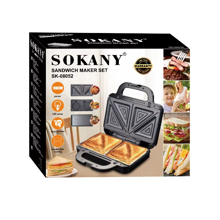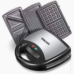 Material: The 3-in-1 sandwich with 2 pin plug maker is made from durable stainless steel ensuring reliability and ease of cleaning.