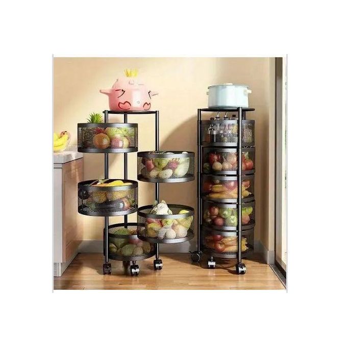 5-Tier Heavy Duty Metallic Rotating Fruit & Vegetable Rack with Wheels – 360° Kitchen Storage Organizer for Onions & Potatoes – Round & Square Options – Rust-Resistant Carbon Steel – Clearance