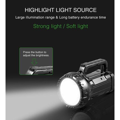 The searchlight is with built-in long-life and free-maintained rechargeable battery of high capacity as 2800mAh.The battery has more than 500 times’ charging and discharging recycle life. LED is in advantages of energy-saving, high light and long life. Function as search light or emergency light is available. The torch also has a long range hence very useful in a farm or for hiking and camping.