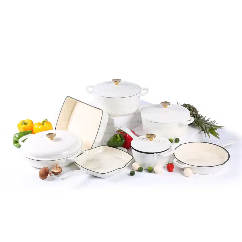 Enamel Cast iron cooking pots Ceramic Enamelled Cast Iron Cookware Set, Oven and Grill Safe