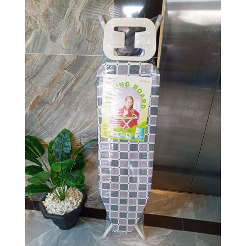 This steel ironing board is a must-have for anyone looking to streamline their ironing chores with a bit of style. Made with high-quality materials, this ironing board is made to last, and the 4-leg support adds stability on both hard and carpet floors. Instead of typical thin foam padding, which often disintegrates quickly, the board top is layered with a soft padding of thick 1 inch sponge. The tan cover is made of our unique polyester material, specifically designed to offer superior stain, heat and scorch resistance. Full of extra features, this product will make ironing quick and easy work with the addition of an iron rest and hanger bar. Rest your iron securely on this platform to cool off for storage. The board can be folded for easy storage.